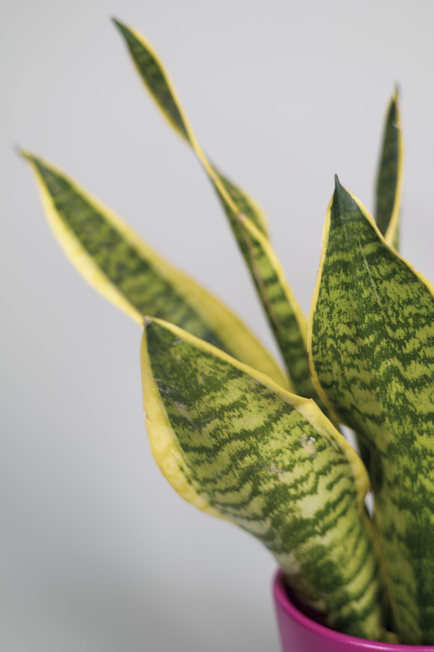 1. Sansevieria Trifasciata : La plus commune, souvent avec des bandes horizontales vertes et jaunes.