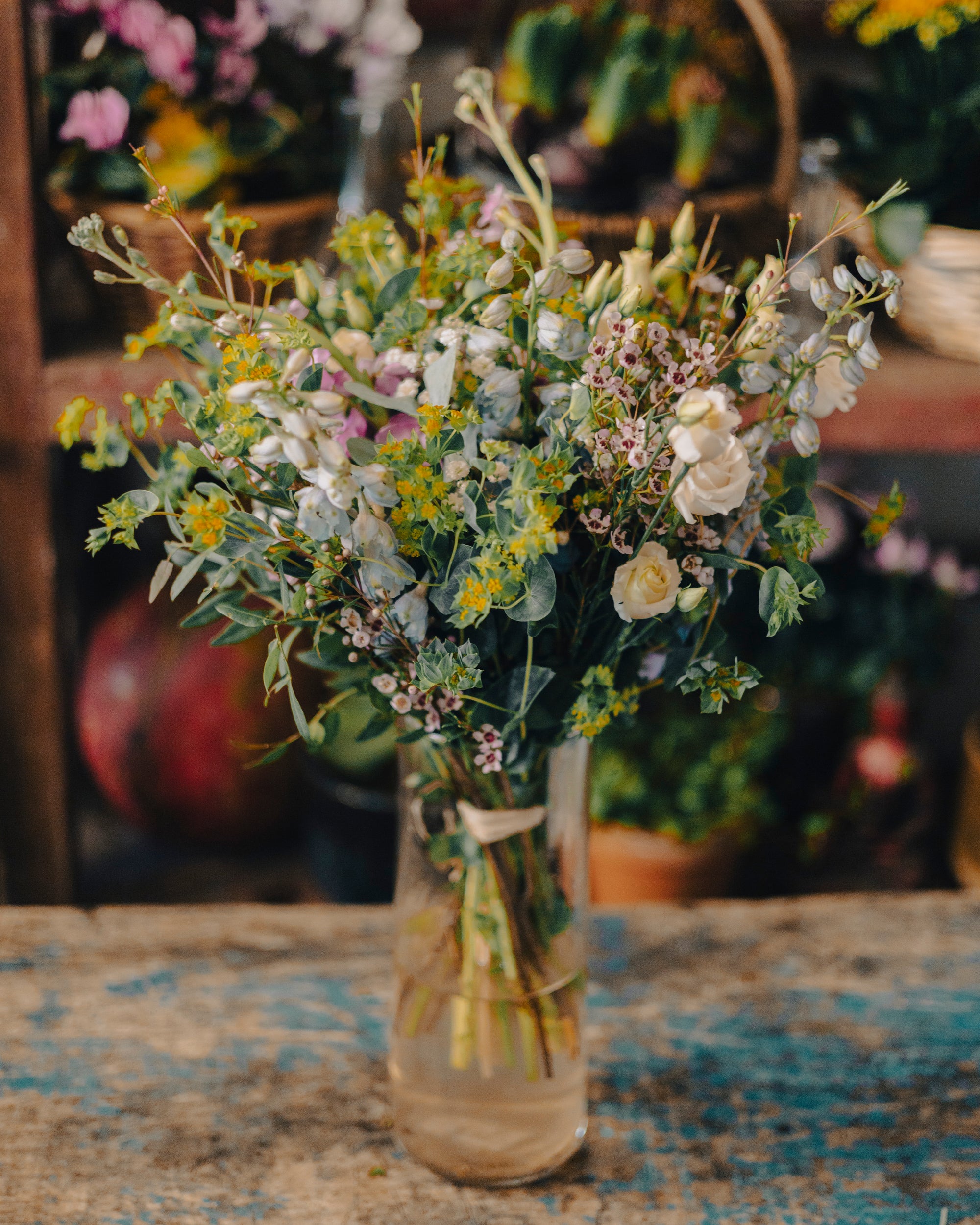 Notre Bouquet Douceur Printanière est une ode à cette saison de renaissance. Il se compose de fleurs blanches douces et de petites touches de jaune lumineux, rappelant les premiers jours ensoleillés du printemps. Entrelacées avec un feuillage vert tendre, ces fleurs sont disposées dans un vase transparent, symbolisant l'éveil de la nature.