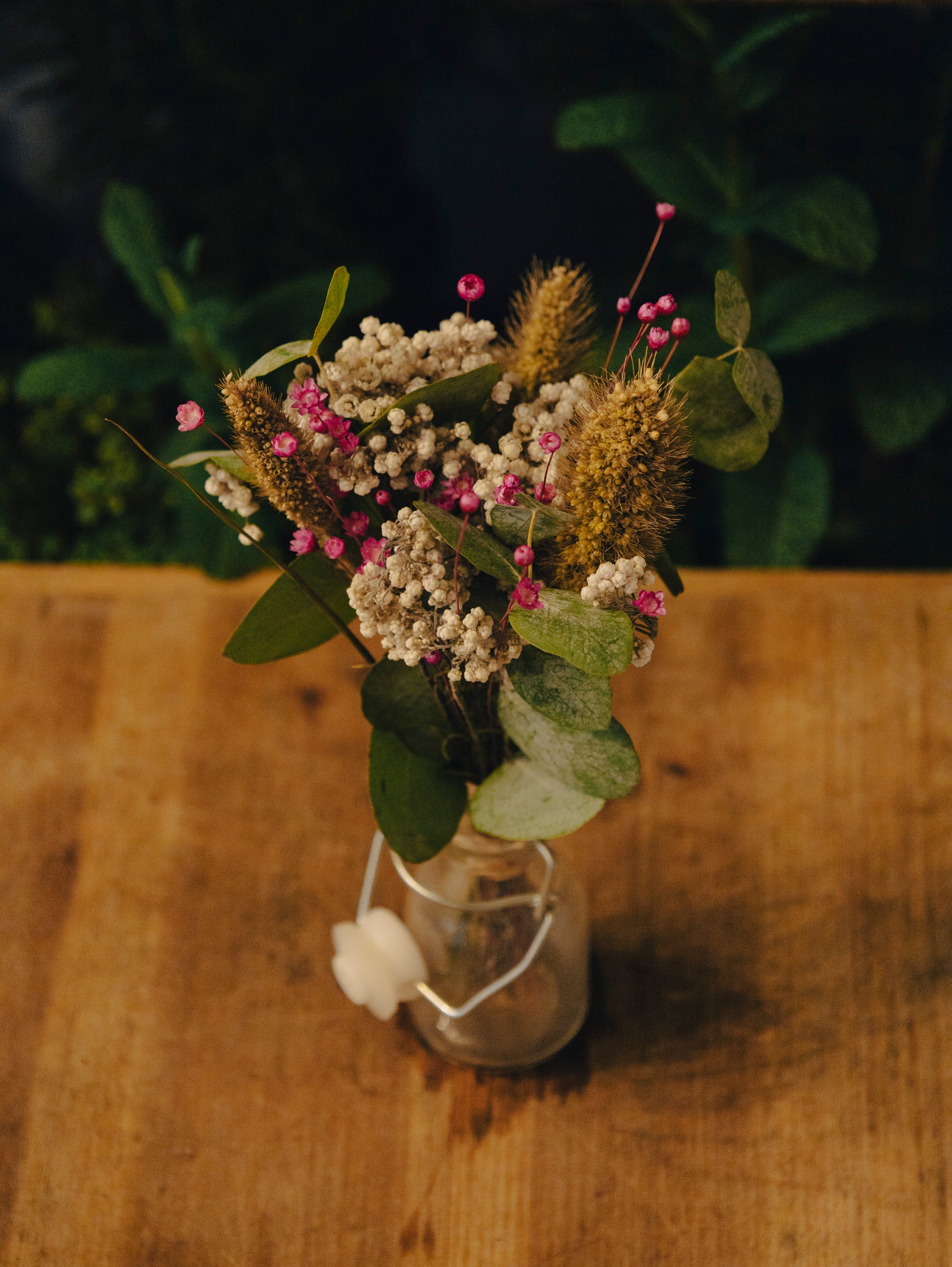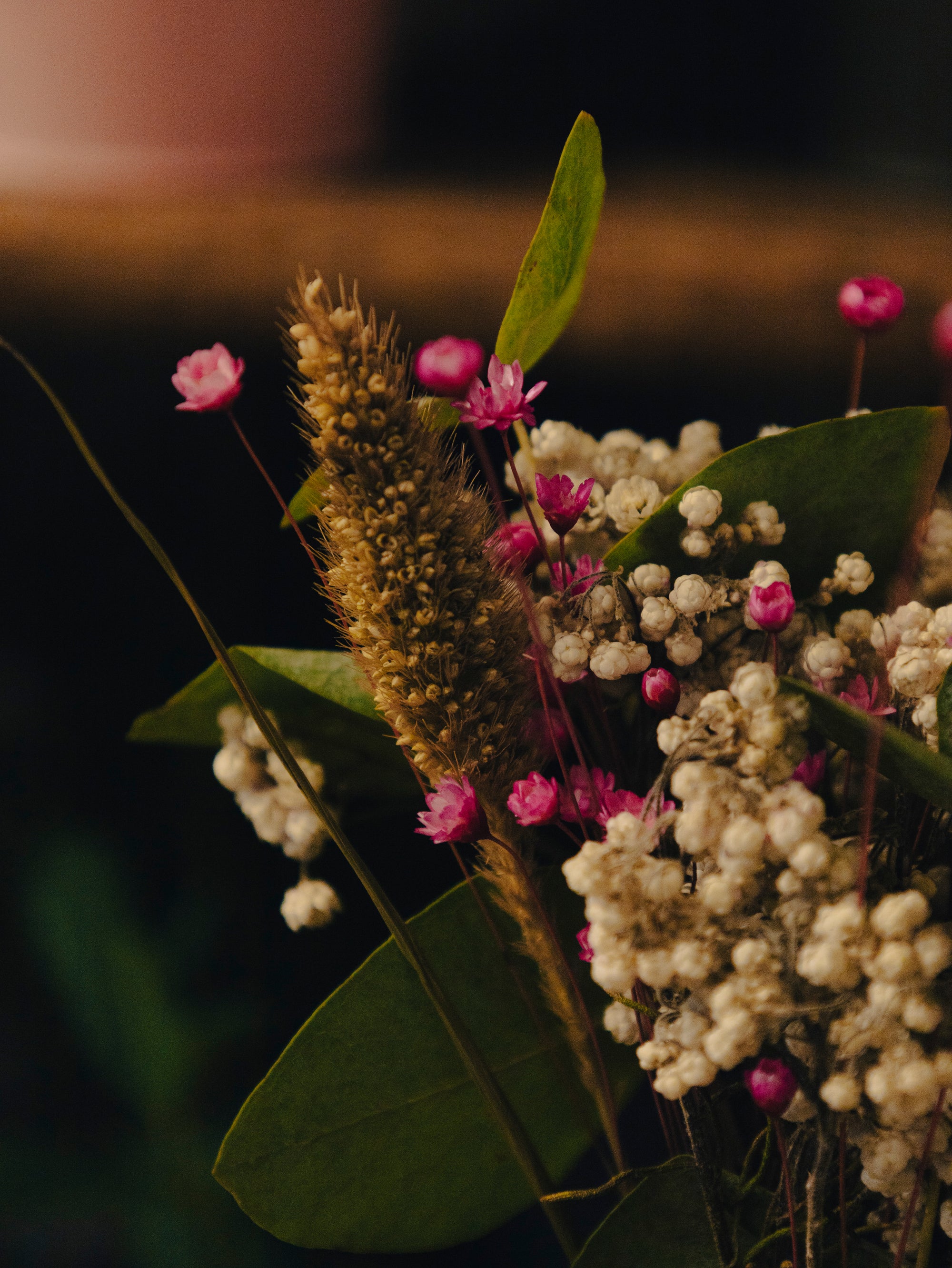 - Épis de blé séchés : Un symbole de rusticité et de simplicité, ces épis dorés apportent texture et un charme naturel à l’ensemble.